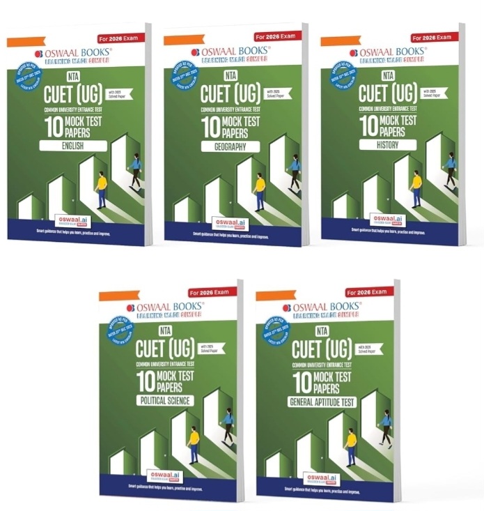 Oswaal NTA CUET (UG) Mock Test Papers | English, Geography, History, Political Science & General Aptitude Test (Set of 5 Books) | For 2026 Exam | Includes 2025 Paper- fully solved | With Oswaal AI